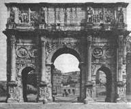 Из поздних сооружений в Риме следует назвать еще триумфальные арки Септимия Севера и Константина, построенные в центре города. Арка Септимия Севера была сооружена на древнем форуме Романум, в северо-восточном его углу. Она была возведена в память десятилетнего правления этого императора в 203 г. и несла на себе уже черты упадка римской классической архитектуры, что сказывалось в ее размещении, пропорциях и декоре. Еще более эклектичной была арка императора Константина, построенная в 315 г. в ознаменование победы Константина над Максенцием, оспаривавшим императорскую власть.