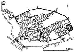 Город-резиденция па примере дворца Диоклетиана в Сплите. Так же, как города-святилища, города-резиденции были редким случаем в градостроительной практике римлян, Главным местопребыванием римских императоров была столица, во время же походов и поездок по империи они останавливались в тех или иных провинциальных городах, устраиваясь там на временное жительство. Рим как главная императорская резиденция не знал конкурентов, Однако во времена Диоклетиана (284-303 гг. ) положение изменилось. Постоянные восстания в провинциях, общая деградация централизованной власти, кризис рабовладельческой экономики заставили императора Диоклетиана провести ряд реформ и в том числе политическую, Власть была разделена между двумя императорами (при сохранении главенства Диоклетиана) и двумя цезарями, Каждый из них имел свою резиденцию. Диоклетиан имел постоянную резиденцию в городе Никомедия (Вифиния) на азиатском берегу Мраморного моря, неподалеку от Босфора. Его соправитель Максимиан-в Медиолануме (Милане), цезарь Гай Валерий имел представительство в Сирмии (на р. Саве), а цезарь Констанций Хлор-в городе Августа Треверов (Трире). Таким образом число столиц увеличилось. Рим же, сохраняя значение столичного города, фактически не был им. Император Диоклетиан помимо официальной резиденции в Никомедии построил частную резиденцию у себя на родине в Далмации на берегу Адриатического моря в Сплите.