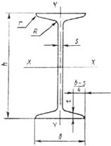 h — высота двута вра; b — ширина полки; s — толщина стенки; t — средня я толщи на полки; R — радиус внутрен него закругления ; r — радиус закругления полки