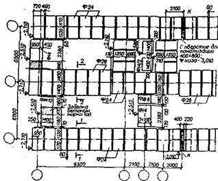 Фрагменты монолитных участков: на углах в местах расположения коммуникаций.