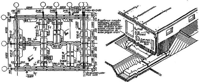 Прерывистые фундаменты под несущие стены (рис.8-б).