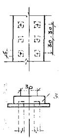 Плиты формуются из бетона марка 150; 200, армированного стальными сетками, расположенными у подошвы. Сетки со швом рабочей арматуры 100; 150 (● Ø 6+9) и монтажной 250;150 (● Ø 4,5) изготавливаются из стержней периодического профиля контактной точечной электросваркой. * В марку плит с усиленным армированием добавляется индекс «У», например Ф16У. Чертежи плит содержатся во 2-ом выпуске серии 1.112 -1. |