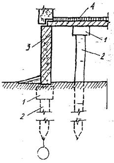 1 – свая; 2 – сборный оголовок; 3 – монолитный железобетонный ростверк;