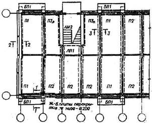 На плоскую железобетонную плиту, (а при ребристой - в промежутках между ребрами), укладывают тяжелый бетон, по которому устраивают чистый пол.