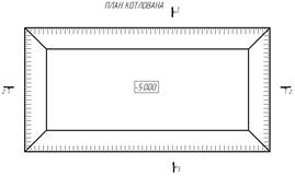 По конфигурации здания в плане и его размеров определяем необходимые размеры котлована. Длина (Lк, м) котлована по дну (по низу) определяется по формуле: