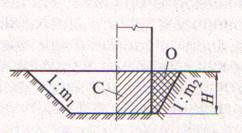 При глубине котлована Н=2 метра в грунте глина будет иметь коэффициент заложения откоса m = 0,25, и откос должен иметь угол предельного равновесия а, при основании откосов котлована не более 76°.