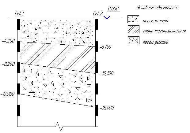 Третий слой – песок крупный, рыхлый, малой степени водонасыщения. Данный слой нельзя использовать в качестве естественного основания.