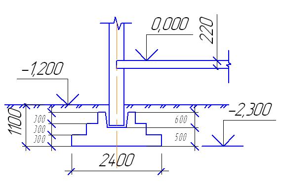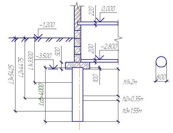 Рис.5 Определение размеров стобчатого фундамента мелкого заложения