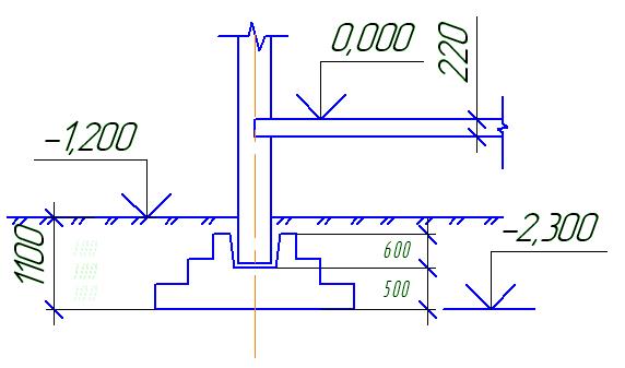 Исходя из анализа инженерно-геологических условий принимаем глубину заложения фундаментов d=1,1 м.