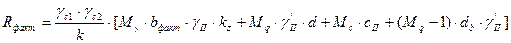Mγ , Mq , Mc – коэффициенты, принимаемые в зависимости от угла внутреннего трения согласно [1, табл. 4], Mγ =0,048, Mq =1,208, Mc =3,45;