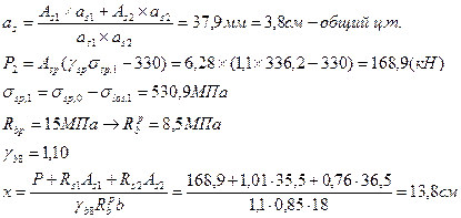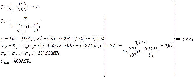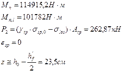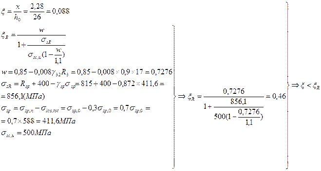 В верхней зоне плиты располагается не напрягаемая арматура ø8АIII, Аs 1 =1,01 см2 , Rs 1 =355 МПа, аs 1 =40 мм; 6ø4Вр -I, Аs 2 =0,76 см2 , Rs 2 =365 МПа