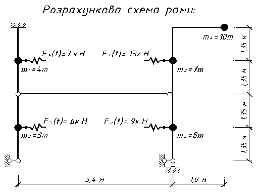 Розрахунок стрижневої системи зі скінченним числом ступенів свободи на вільні та вимушені коливання
