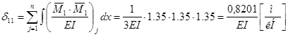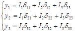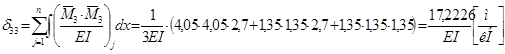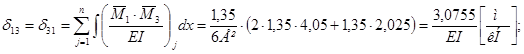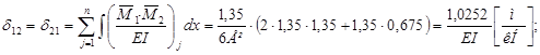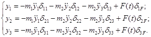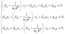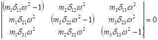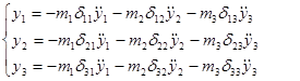 де І1 - сила інерції маси m1 по вертикалі; І2 - сила інерції маси m2 по вертикалі; І3 - сила інерції маси m3 по вертикалі; δij - одиничне переміщення по і-тому напрямку викликане дією одиничної сили по j-тому напрямку.