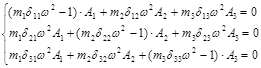Отримана система рівнянь (5) - це система лінійних алгебраїчних рівнянь відносно невідомих амплітуд переміщень точкових мас - А1 , А2 і А3 .
