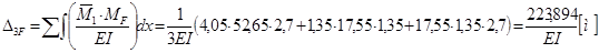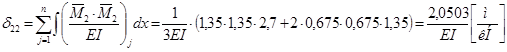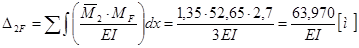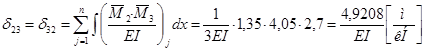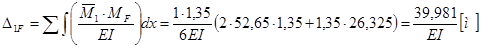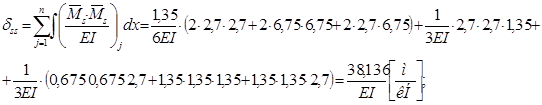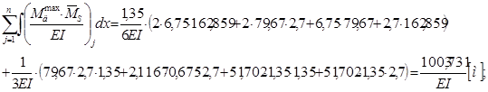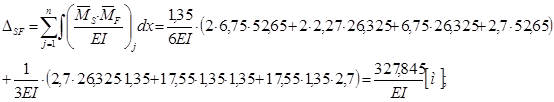 Для перевірки правильності обчислення вільних членів, знайдемо добуток сумарної епюри від одиничного навантаження та епюри моментів від амплітудного значення збурюючої сили: