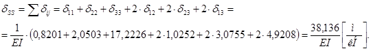 4) Для перевірки правильності обчислення коефіцієнтів матриці податливості, побудуємо сумарну епюру від одиничних навантажень: