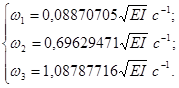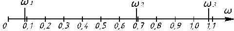 2) За отриманими значеннями частот вільних коливань будуємо спектр частот: