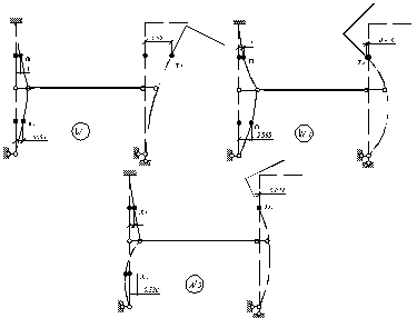 Розв’язавши систему рівнянь за допомогою програми Dinamo16, одержимо: амплітуди сил інерції: Z1 = 2,606116 [кН], Z2 = 3.135882 [кН], Z3 = 25.298055 [кН]. Амплітуди коливань: С1 = 123.137351/ЕІ [м], С2 = 197.557959/ЕІ [м], С3 = 683.038443/ЕІ [м].