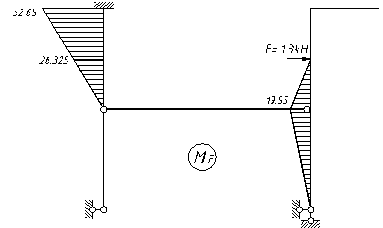 2). Обчислимо вільні члени шляхом побудови епюри згинальних моментів від амплітудного значення збурюючої сили: