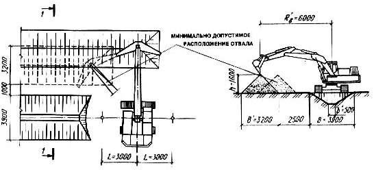 Рис.20. Технологическая схема разработки выемок экскаватором ЭО-4121А, оборудованным обратной лопатой и захватно-клещевым устройством