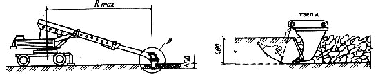 Рис.21. Схема работы экскаватора, снабженного шарнирно-сочлененной для работы в стесненных условиях