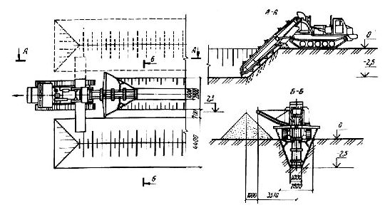 На рис.22 показаны схемы разработки грунта цепным экскаватором непрерывного действия ЭТЦ-252.