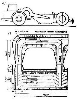 Расширению технологических возможностей, повышению производительности скреперов способствует применение различных схем движения при выполнении рабочего цикла; наиболее известны такие схемы, как "зигзаг", "эллипс", "восьмерка","спираль", "челночно-поперечная", "челночно-продольная".