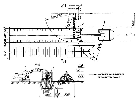 Рис.22. Технологическая экскаватором схема разработки грунта непрерывного действия при устройстве траншеи ЭТЦ-252