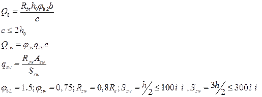 Значение перерезывающей силы рассчитываем по формулам: