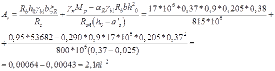 Для сечения на опоре по расчету получили (