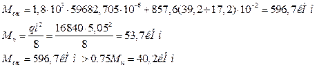 Условие не выполняется, т.е. моменты образования трещин при данной внешней нагрузке не возникнет, а значит и трещины не появятся. В этом случае проверку по раскрытию трещин не выполняют, но в учебных целях мы произведем этот расчет.