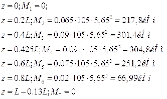 Делим пролет на 5 равных частей и для каждой части вычисляем свой момент.