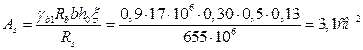 Определяем площадь рабочей арматуры в растянутой зоне