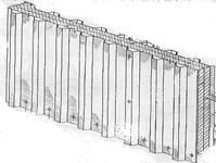 ·первый ряд защитных козырьков имеет сплошной настил на высоте не более 6м от земли и сохраняться до полного окончания кладки стен, а второй ряд, изготовленный сплошным или из сетчатых материалов с ячейкой не более 50х50мм, — устанавливаться на высоте 6-7м над первым рядом, а затем по ходу кладки переставляться через каждые 6-7м.
