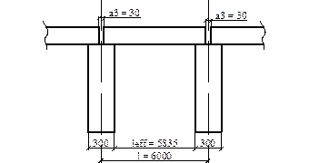 Ширина пролета: leff = l – а3 – ½(b - a3 ) = 6000 – 30 – ½(300 - 30) = 5.835м,