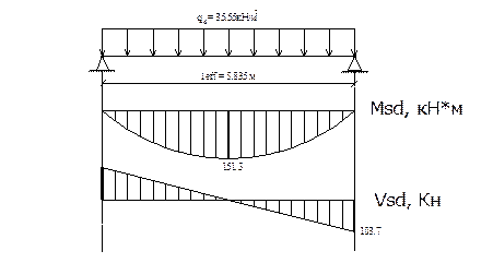 Vsd = qd •leff /2 = 35.55•5.835/2 = 103.7кН.