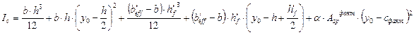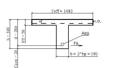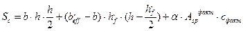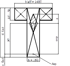 Рассмотрим тавровое сечение. Предположим, что нейтральная ось проходит в полке, т.к. х ≤ hf ’ = 50мм, то сжатая зона сечения представляет собой прямоугольник Acc = b’eff •x (площадь сечения бетона в сжатой зоне).