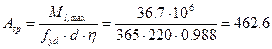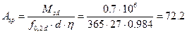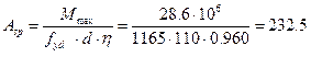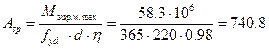 Asp = Msd /f0.2d •d•η = 151.3•106 /1165•240•0.953 = 567.8мм2 ;