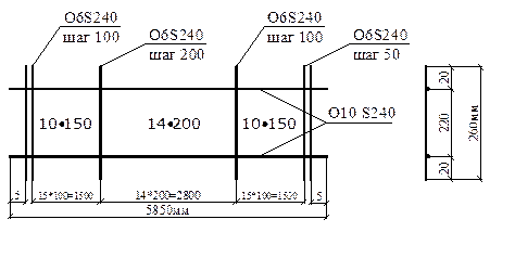 | 5 | 467.5 | 521.7 | 7× S1400 Ø10, Аs р =549.5 |