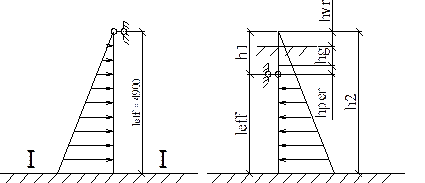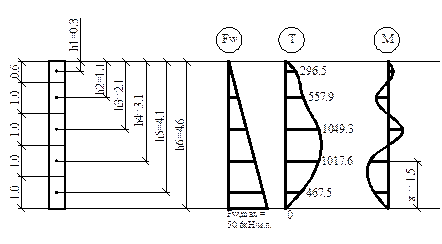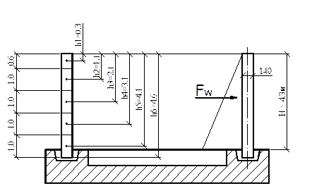 Для определения кольцевых растягивающих усилий в стенке, разбиваем стенку по высоте на зоны по 1м (нумерация зон сверху вниз h1, h2…) и определяем кольцевые растягивающие усилия в центре каждой зоны: