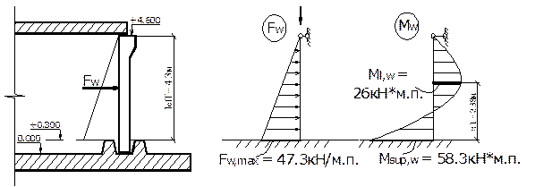 Найдем максимальные усилия от внешней расчетной нагрузки – расчетный изгибающий момент и расчетную поперечную силу: