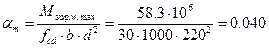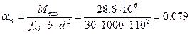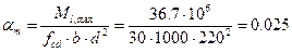 Зная величину αm , определим ζ – относительную высоту сжатой зоны: ζ = 0.032; η = 0.984.