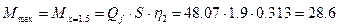 кН/м.п. и действует в сечении с ординатой x, соответствующей максимальному значению коэффициента η2