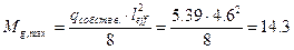 Msd = qd •leff 2 /8 = 35.55•5.8352 /8 = 151.3кН•м;