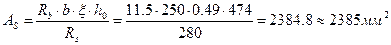 Где As – площадь поперечного сечения рабочей продольной арматуры, мм2 ;