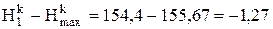 h1-2 =H1 -H2 =153,63-154,47= -0,84 (5)