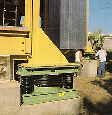 Пружинный демпфер (springs-with-damper base isolator) является изолирующим устройством, подобным по замыслу свинцово-резиновой опоре. Два небольших трехэтажных дома с такими устройствами, расположенными в Санта Монике (Калифорния), были проэкзаменованы Нортриджским землетрясением в 1994 году.