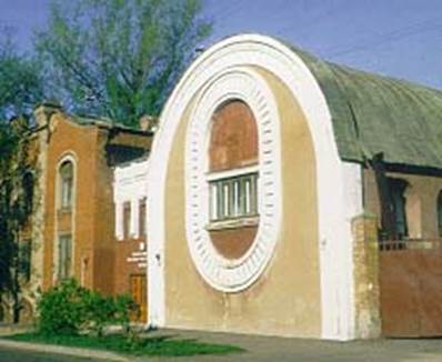 Оригинальностью и крупномасштабностью отличается архитектура двухэтажного жилого дома и конюшен С. Рукавишникова (рис.6), построенных архитектором А. Полтановым (ул. Семашко. 9). Торцовый фасад крестообразных в плане конюшен имеет необычный вид полуовала, образованного сводчатым покрытием с единственным огромным окном также овальной формы. Такой же полуовал есть в центре бокового фасада, прорезанного невысокими полуциркульными окнами с короткими полуколоннами в простенках. Необычный вид фасадов, их пластичность, крупные сочные детали делают облик здания неповторимым и легко запоминающимся. В архитектуре рядом стоящего жилого дома автор проекта также использовал крупные криволинейные формы, чем в известной степени добился единства всего микроансамбля.