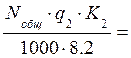 q2 - удельный расход воды на 1 человека (q2 =25 л );