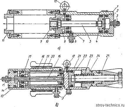Рис. 236. Гидравлические домкраты: а — стержневой; б — пучковый